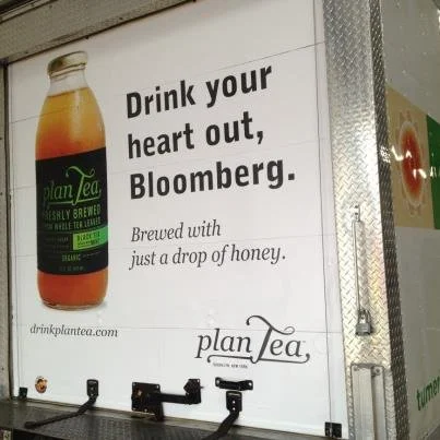 For a line of lightly sweetened organic iced teas distributed in NYC circa 2012 when Mayor Michael Bloomberg was crusading against sugary drinks.
