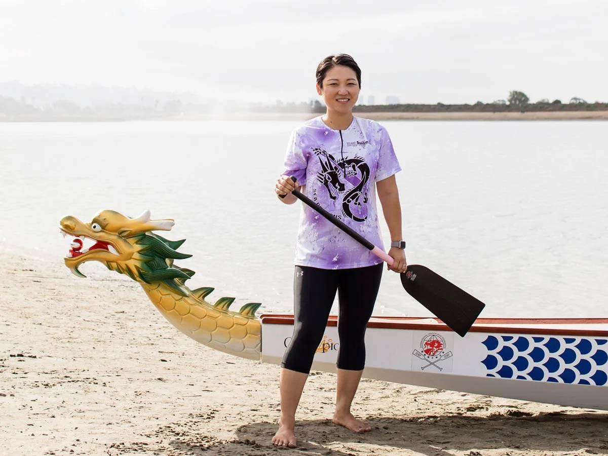 She often practices with her team at Youth Aquatic Center on Fiesta Island three days a week as they hone their skills for the San Diego International Dragon Boat Race, a competition held each fall in Mission Bay.